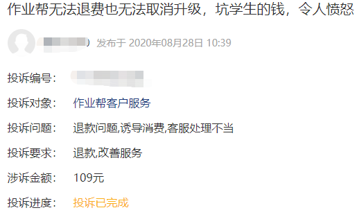 在投訴網站上,作業(yè)幫也被頻繁投訴。根據黑貓投訴網站統(tǒng)計,關于作業(yè)幫的投訴三百多條,涉及退費、扣費、服務等方方面面。