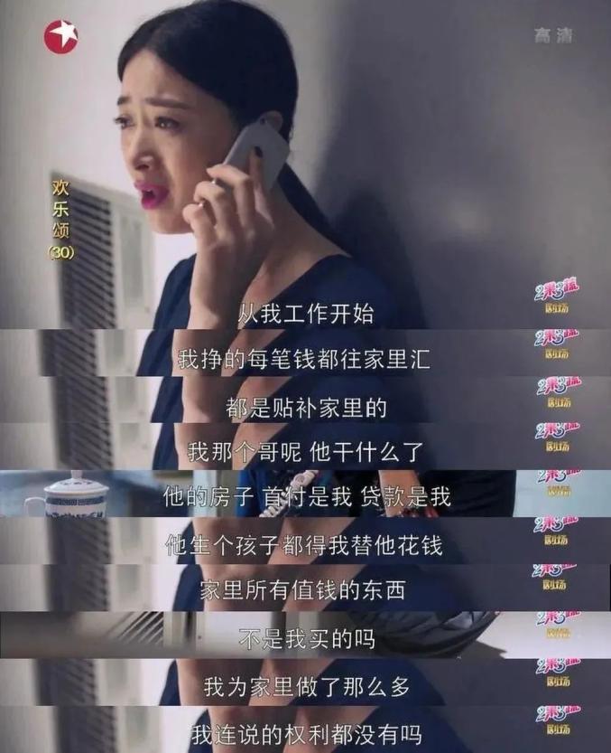 《歡樂(lè)頌》中的樊勝美,從小被父母要求懂事、孝順。父親生病了,找她要錢,哥哥結(jié)婚買房,找她要錢,甚至小侄子的學(xué)費(fèi),也讓她出。一家人像吸血鬼一樣,榨干了她所有的積蓄。