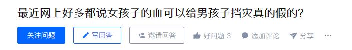 瞅了眼日歷,2021年了,這個(gè)“女孩子的血可以給男孩子擋災(zāi)”,到底是從哪兒傳出來(lái)的?