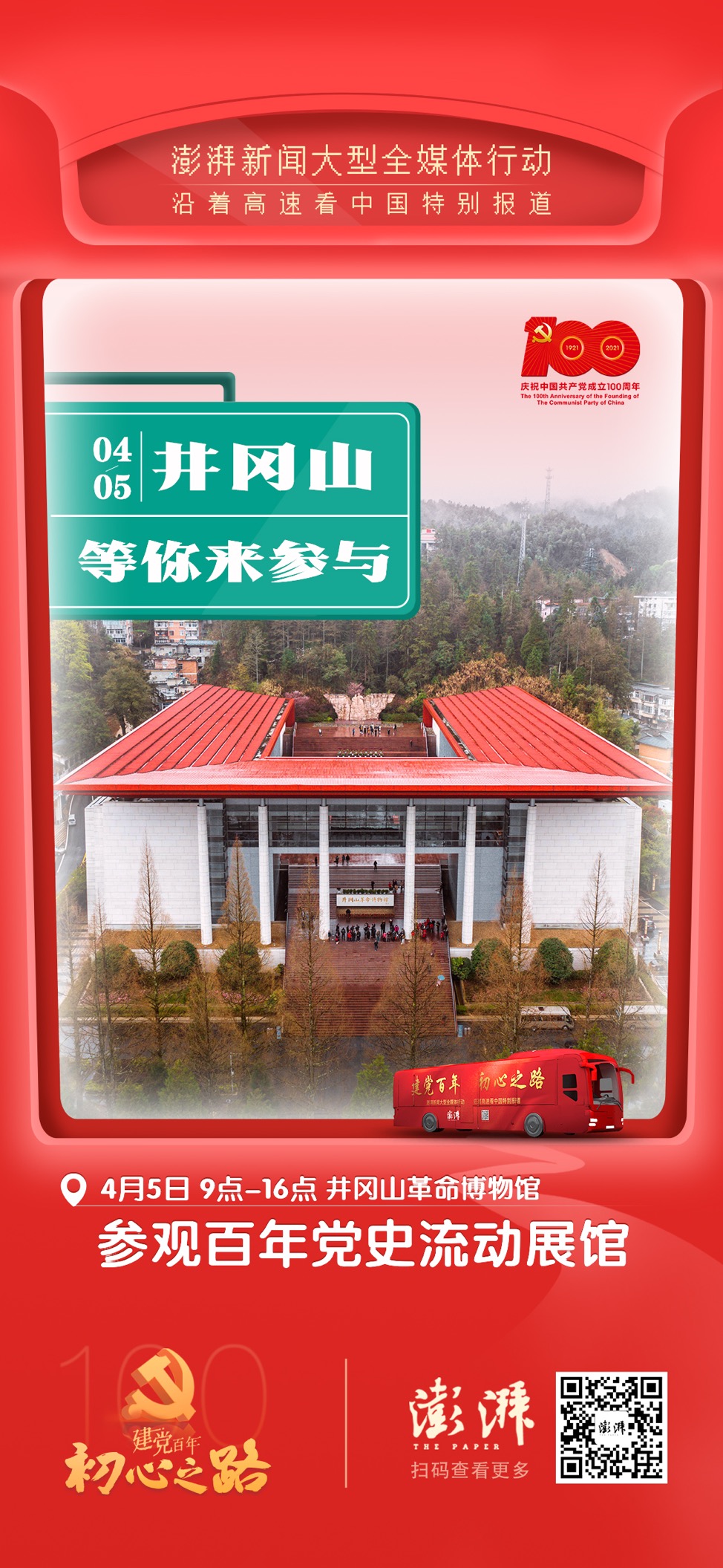 2021年4月5日,澎湃新聞“建黨百年 初心之路”全媒體巡展車隊(duì)將走進(jìn)“中國(guó)革命的搖籃”井岡山,近距離感悟井岡山革命根據(jù)地創(chuàng)建與發(fā)展歷史的精神內(nèi)涵,追憶那段崢嶸歲月,傳承紅色基因,弘揚(yáng)“井岡山精神”。