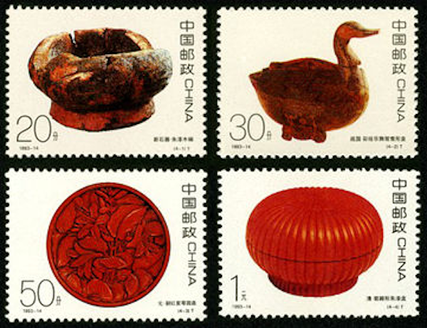 出現(xiàn)在郵票上的菊瓣形朱漆盒
