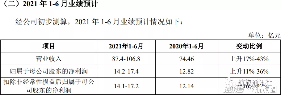 東航物流預(yù)計,2021年上半年營業(yè)收入87.4-106.8億元;歸母凈利潤14.2-17.4億元;扣非歸母凈利潤14.1-17.2億元,較2020年同期均為正增長。
