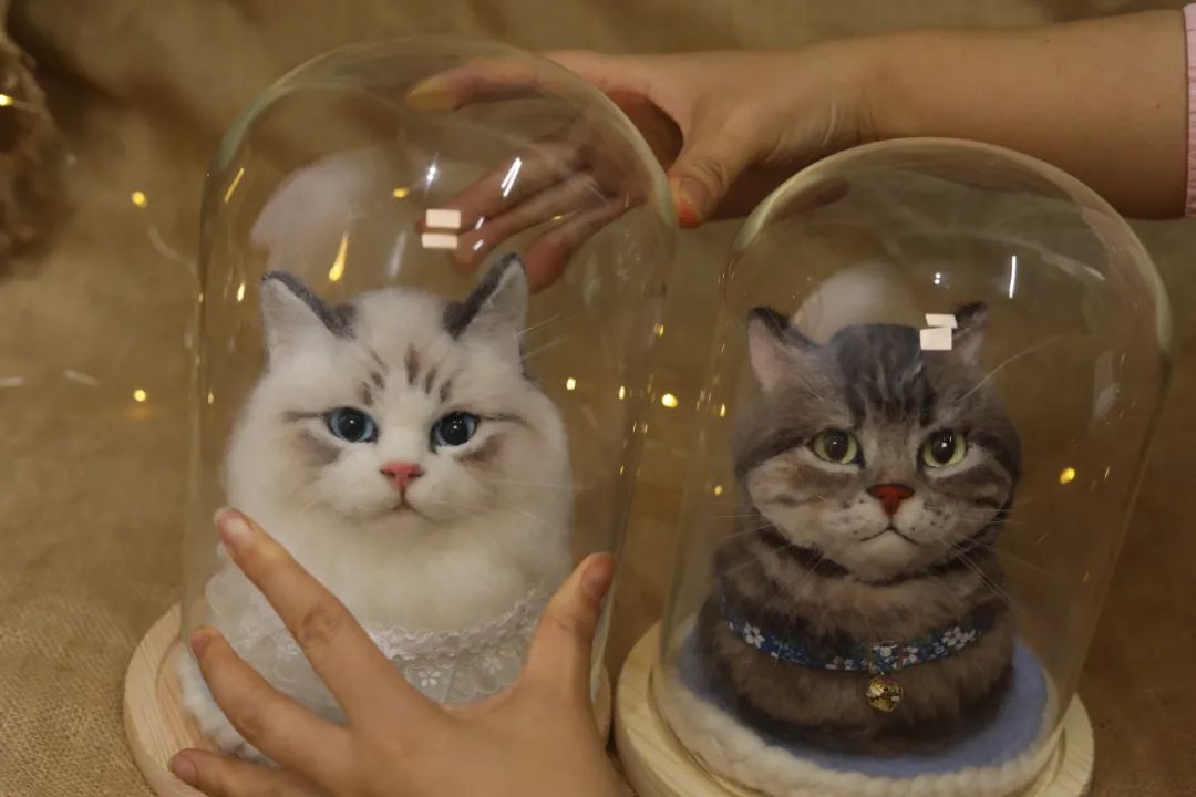 一位客人是演員,她收養(yǎng)了三只流浪貓,停不下的通告讓她無法長時間陪在寵物身邊,攜帶以寵物原型定制的羊毛氈出差,她終于讓自己的思念有了歸處。