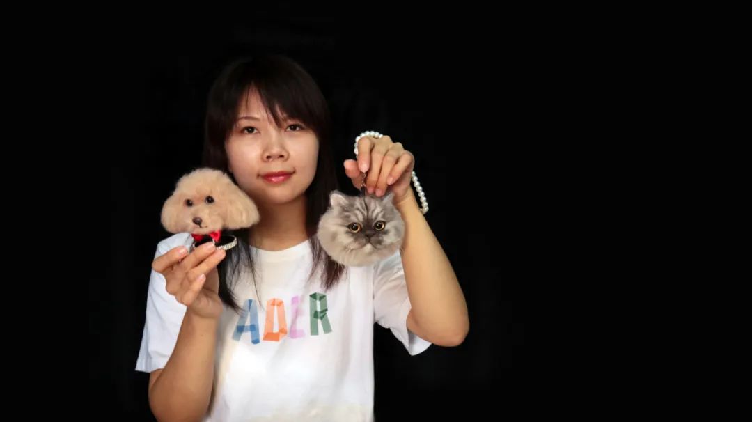在養(yǎng)寵人的圈子里,她有一個特別的名字——回憶修復師。她用一個個羊毛氈作品為養(yǎng)寵人留存愛寵的模樣,也用一針一線戳出了孩子的未來。