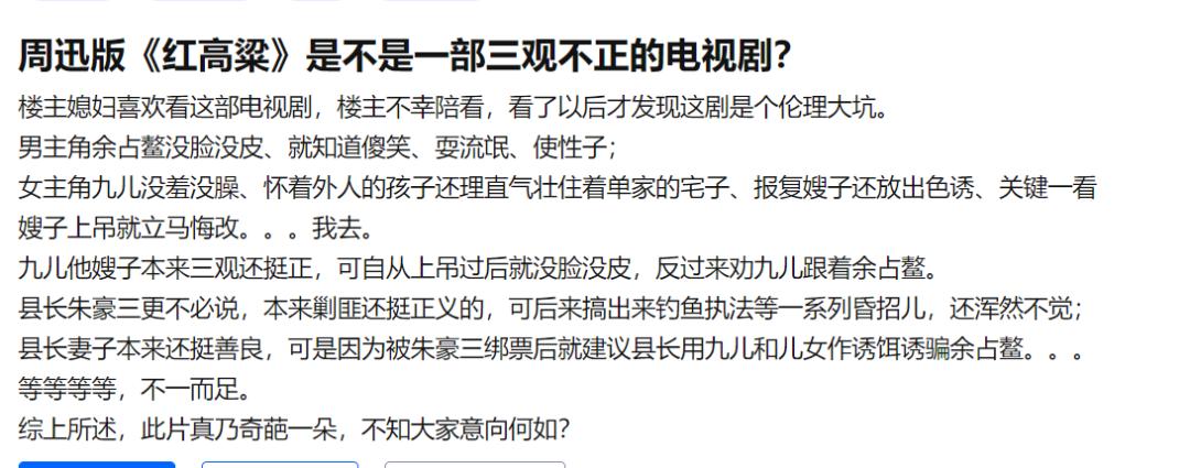 在社交網(wǎng)絡(luò)搜索「毀三觀」三個(gè)字,幾乎任何類型的文藝作品都有中招。新的影視劇幾乎部部「三觀不正、販賣焦慮」;經(jīng)典名著、童年神作被重新解讀成「細(xì)思極恐」「毀三觀」;即便是近期沒有活躍的作家、微博大V,也可能被突然扒出來一條多年前的言論,被指責(zé)「立場(chǎng)有問題」,而他們的作品也受到牽連。