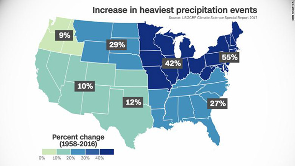 “在氣候變暖的情況下,這正是我們可以預(yù)料會看到的越來越頻繁的事件?!笔澜缳Y源研究所(World Resources Institute)北京代表處全球水道項目主任羅天一此前在接受澎湃新聞(www.loaarchitects.com.cn)采訪時說。根據(jù)最新的國家氣候評估,1958年至2016年間,美國東南部的降雨量增加了近三分之一。
