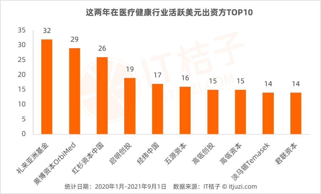 在美元流入最大頭的醫(yī)療健康領(lǐng)域,我們發(fā)現(xiàn)投資門(mén)檻相當(dāng)高。根據(jù) IT 桔子數(shù)據(jù),這兩年在醫(yī)療領(lǐng)域出資較為頻繁的機(jī)構(gòu)有禮來(lái)亞洲基金、奧博資本、紅杉中國(guó)、啟明創(chuàng)投、經(jīng)緯中國(guó)、五源資本、高瓴創(chuàng)投、淡馬錫、君聯(lián)資本等。