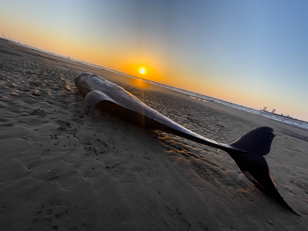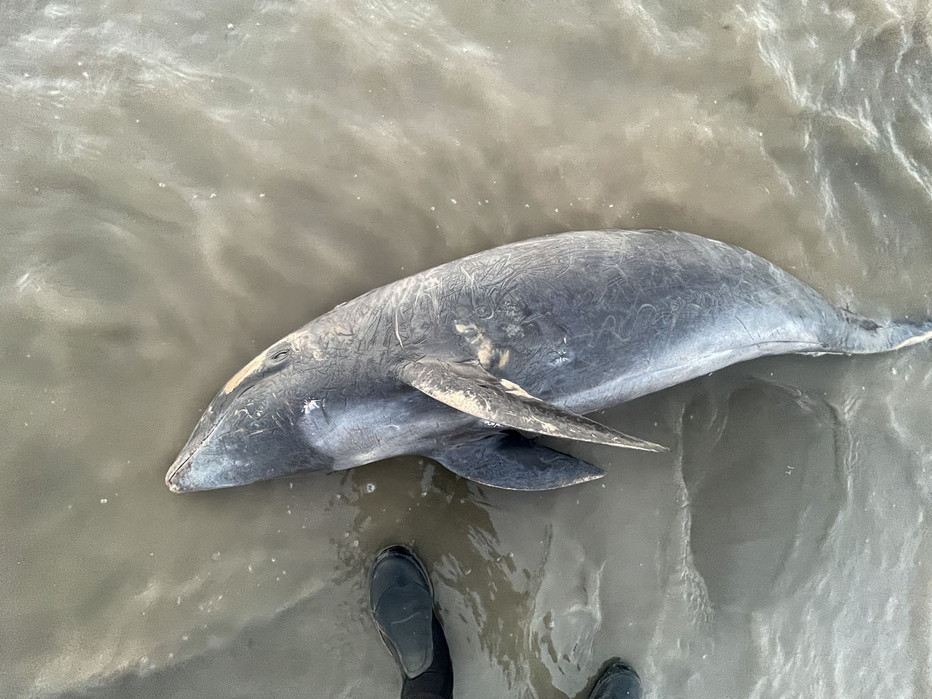 上海金山海邊擱淺鯨豚搜救結(jié)束,共發(fā)現(xiàn)4只死體瓜頭鯨