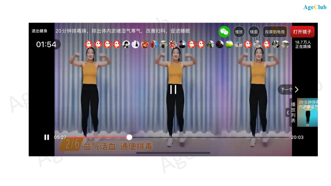 AgeClub在線下接觸過(guò)參加形體班的人群后發(fā)現(xiàn),相比于慢病管理、身體各項(xiàng)指標(biāo)和狀況,良好的體態(tài)能夠讓她們獲得更多認(rèn)可,因此備受老年女性關(guān)注。短視頻平臺(tái)形體類(lèi)賬號(hào)的出現(xiàn),是對(duì)線下形體班的補(bǔ)充。