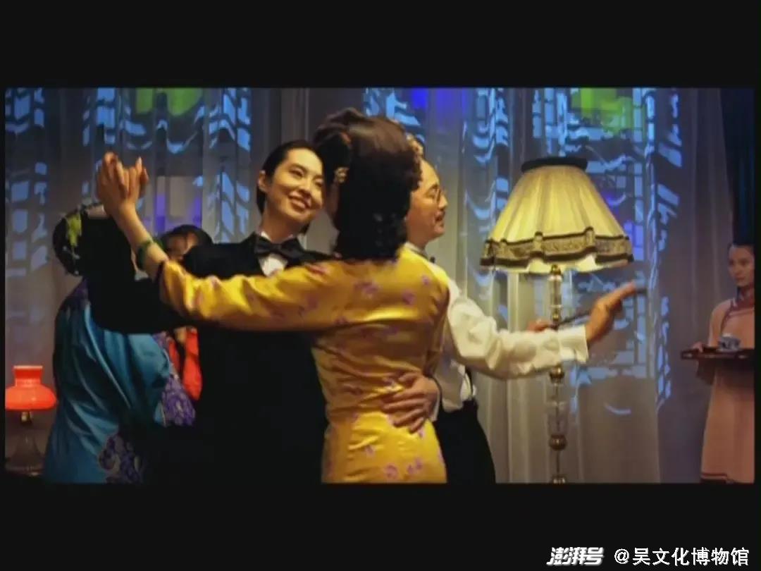 影片《游園驚夢》的江南美學首先體現(xiàn)在戲曲美。影片不僅敘事與《牡丹亭》暗合,且人物與影像均具有互文特征。如影片開場的一鏡到底,一個個戲曲人物粉墨登場,鏡頭隨著人物的行動線巧妙自然地交代了榮宅,一所典型的江南園林被展現(xiàn),宮澤理惠飾演的翠花唱著【皂羅袍】,王祖賢飾演的榮蘭西式穿戴登場,與翠花翩翩起舞,昆曲與交際舞、榮宅的中式古典擺設(shè)與西式服裝的對立融合,都暗示了榮蘭的進步思想與生長環(huán)境的相悖,以及園子外世界的翻天覆地。