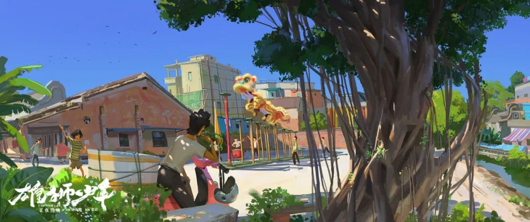 電影的某個(gè)場(chǎng)景概念圖,右邊就是明顯的榕樹 |《雄獅少年》概念圖