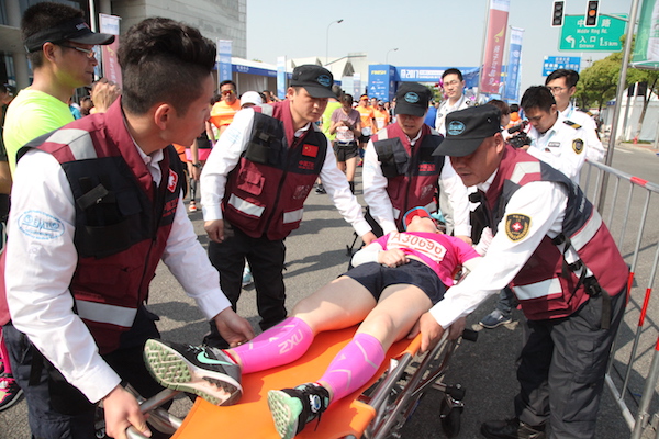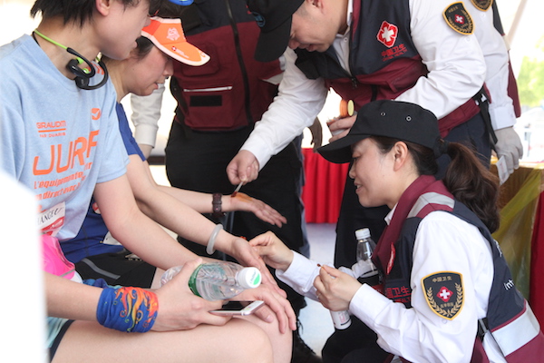① 在近終點容易發(fā)生意外的0.5公里、200米、100米處序列布局醫(yī)療隊員,對擦傷、起泡的運動員可現(xiàn)場逐一處理;