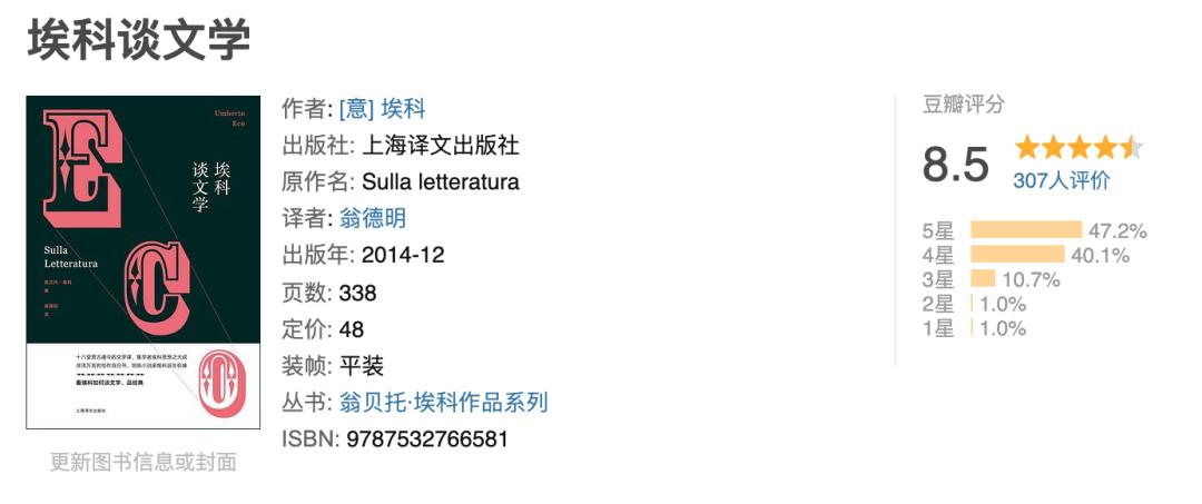 在《愛欲與哀矜》中尋到此書,就從閱讀天堂入手,讀到我如何寫作。是埃科作品中為數(shù)不多的文學評論專著,其中涉及眾多大家,從博爾赫斯到亞里士多德,集結了散文、演講、觀點等。在學習文學的路徑上有很大的價值。
