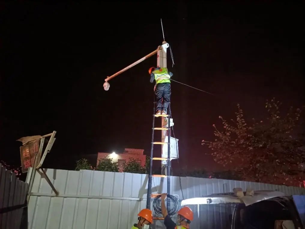 中國電信通信保障工作人員正在布設(shè)基站光纜