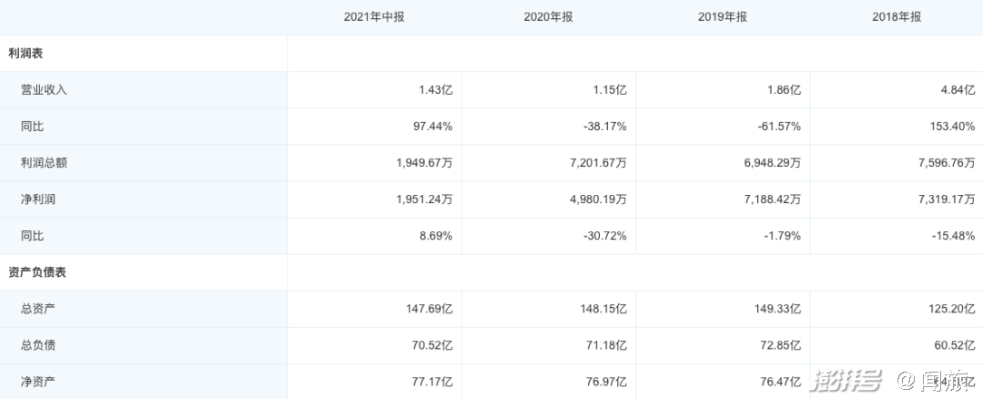 但根據其歷年的財務數據顯示,早在疫情之前,大理海東開發(fā)投資集團的經營形勢已呈下滑態(tài)勢,其2018年營收為4.84億元,同比153.40%,但凈利潤為7319.17萬,同比下滑-15.48%;2019年,公司營收及凈利潤雙降,疫情下的2020年,大理海東開發(fā)投資集團更是遭遇重創(chuàng),其營收降至1.15億,凈利潤降至4980.19萬,同比大跌30.72%,而從2021年中報情況來看,其利潤情況仍未出現(xiàn)明顯好轉。