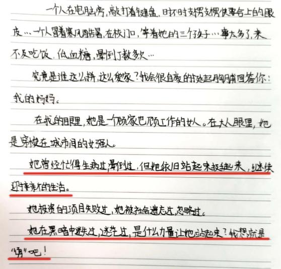 “她曾經(jīng)忙得生病暈倒過,但她依舊站起來、挺起來,迎接新的生活?!?/p>