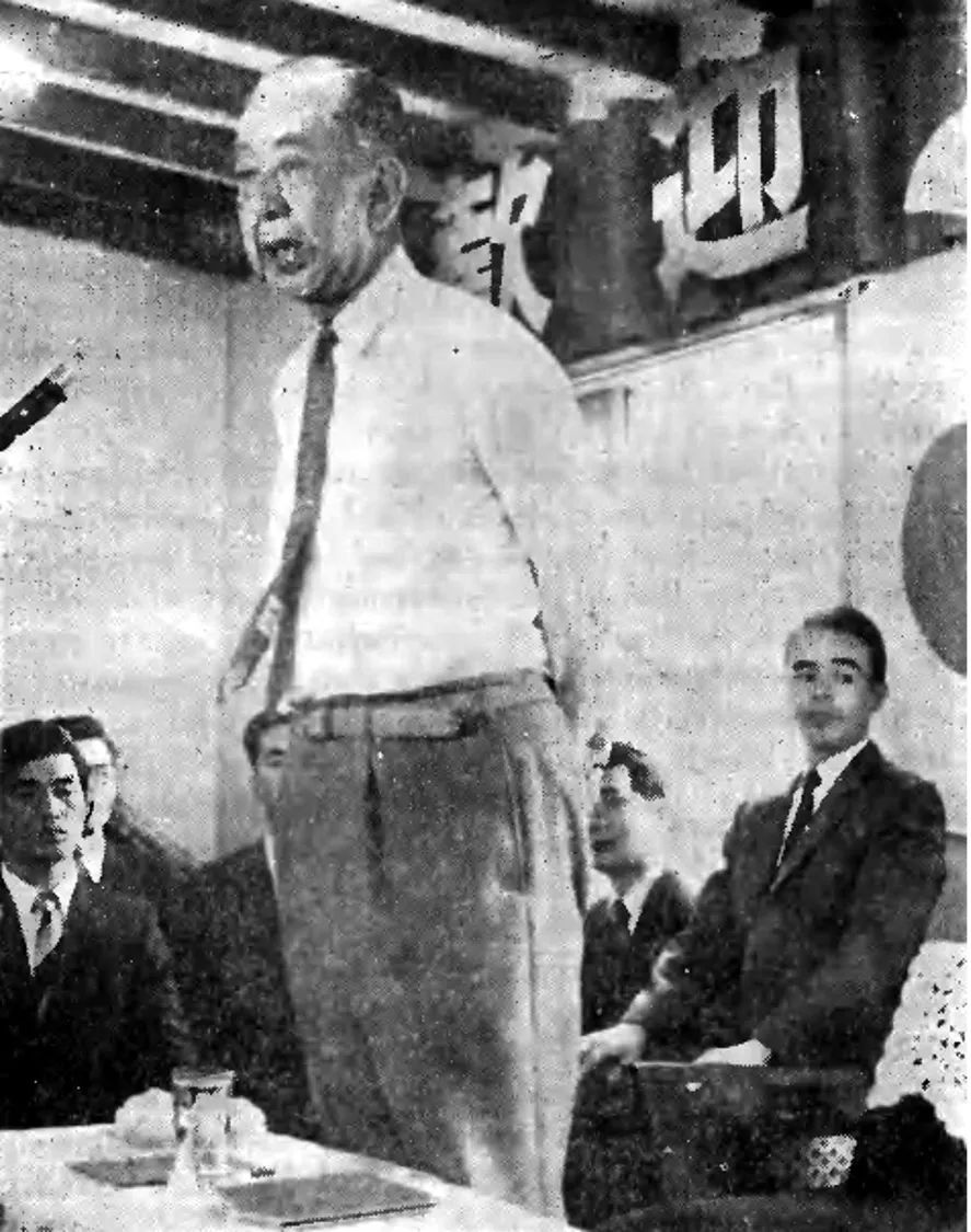 1970年岸信介在“統(tǒng)一教會”東京總部演講。