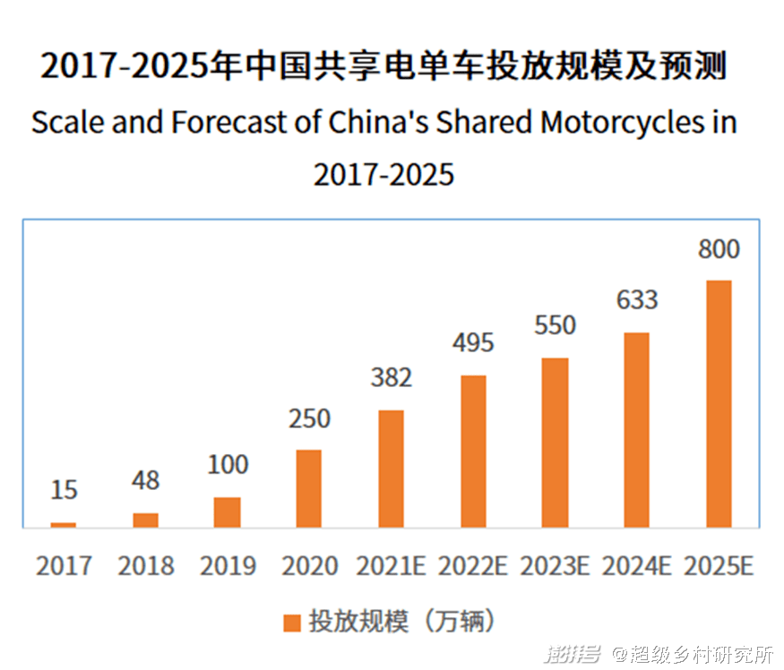 隨之而來(lái)的,還有電單車。據(jù)一項(xiàng)關(guān)于《2017-2025年中國(guó)共享電單車投放規(guī)模及預(yù)測(cè)》的數(shù)據(jù)顯示: