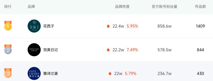 作為“美妝屆618”一般的存在,針對七夕節(jié)日,很多美妝品牌提前一個月就開始展開各種營銷活動。根據(jù)熱浪數(shù)據(jù)的“品牌熱dou榜”顯示,花西子、完美日記、雅詩蘭黛位居分類榜單投放前三。
