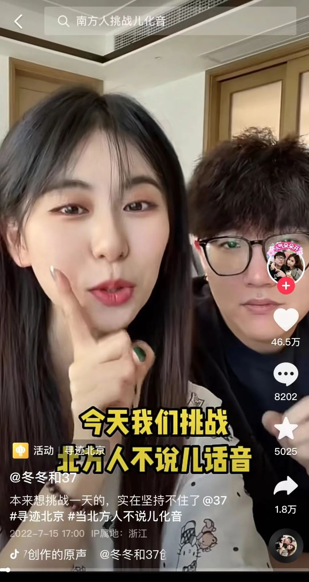 除了官方大手子,當(dāng)你在抖音上搜索#尋跡北京的時候,你還能從更多宣傳北京的達人視頻中去了解北京的文化底蘊。