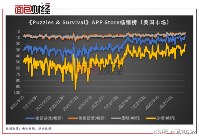 《Puzzles & Survival》是一款“三消+SLG”創(chuàng)新玩法的游戲,于2020年上線。截至2022年6月底,該游戲累計(jì)流水已超過42億元。Sensor Tower數(shù)據(jù)顯示,該游戲報(bào)告期內(nèi)位列中國手游出海收入榜TOP5。