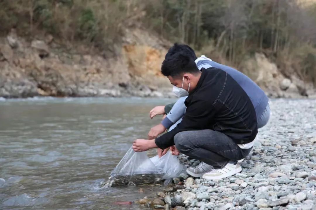 被告人在青衣江畔自愿開展增殖放流。