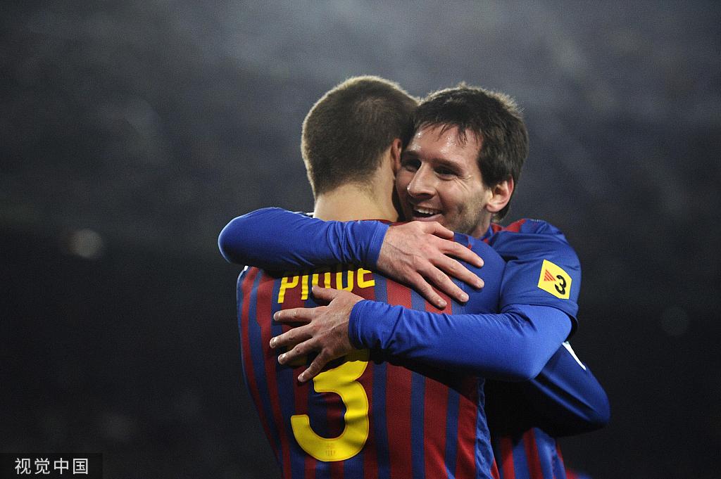 梅西和皮克擁抱,他倆也都離開了巴薩。