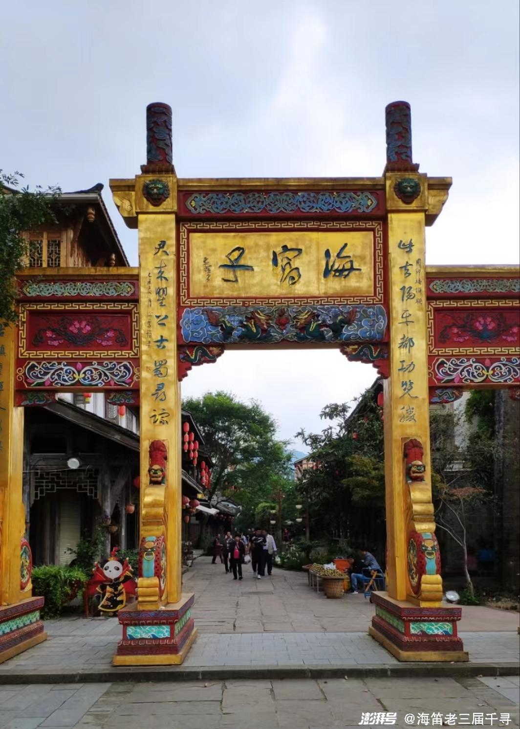 幾天前兒子休假,因疫情不能遠(yuǎn)游,只能北出成都60余公里,沿彭州市湔江溯流而上,在蜿蜒的九曲回環(huán)“臂腕”處,有一個(gè)歷史悠久、文化濃厚的古鎮(zhèn)海窩子一游。海窩子沒(méi)有“?!?,卻是與金沙遺址、三星堆一脈同源的古蜀之都。這里有兩個(gè)傳說(shuō):一是“蜀王魚(yú)鳧,田于湔山,建都瞿上”,舊時(shí)帝王的象征是龍,俗話說(shuō)龍潛于海,所以后人把當(dāng)?shù)胤Q為“海窩子”;二是與地理有關(guān),古鎮(zhèn)靠山邊有一石洞終年有冷泉水流出,村民稱其為是“海眼”,也即“海窩子”。也是因疫情,到這里來(lái)的游客很少,街上少行人。走進(jìn)海窩子古鎮(zhèn),踏上青石板的路,就仿佛走近了歷史的歲月,在舊時(shí)光里穿梭。