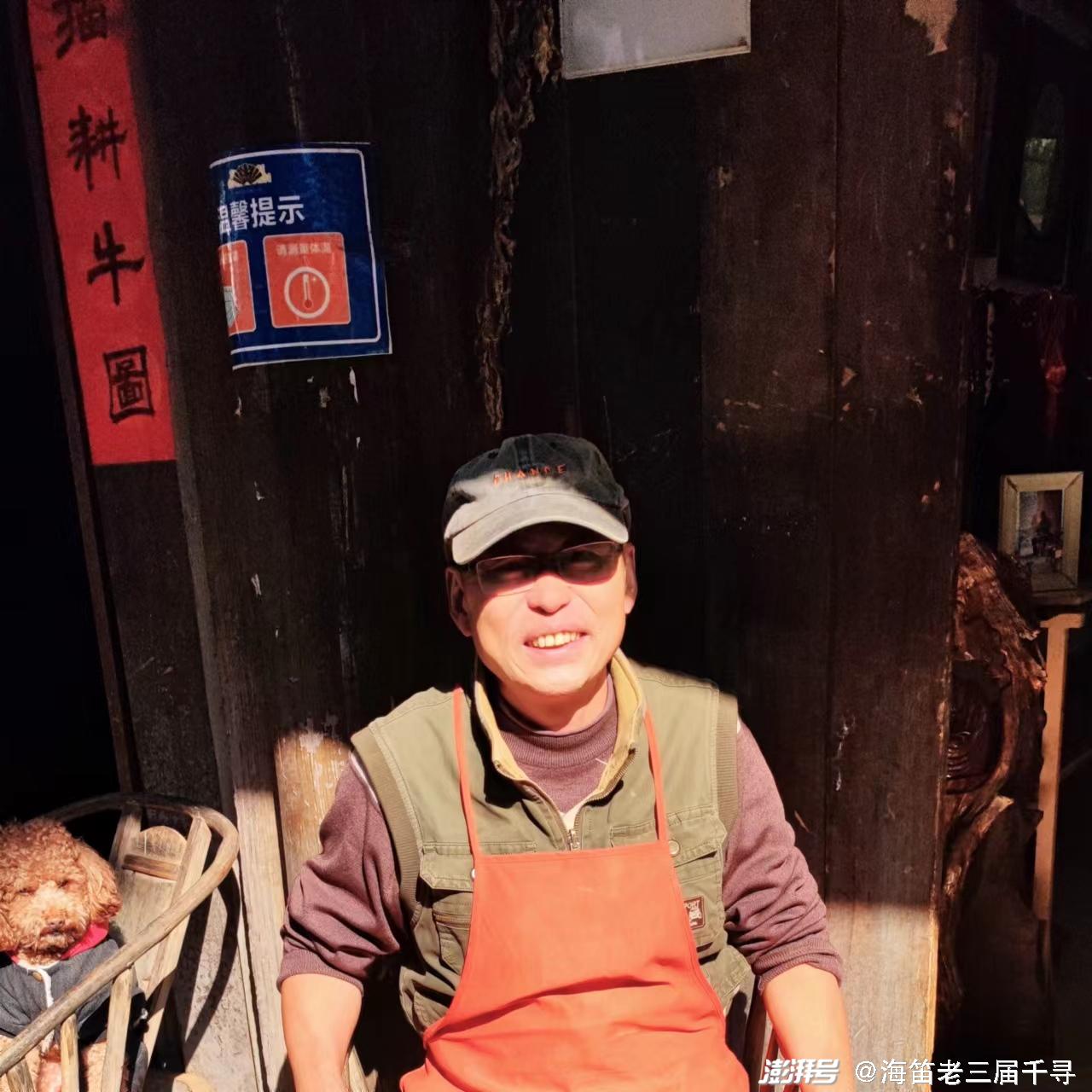 見(jiàn)一臨街店鋪,店招高懸“楊木匠”,這一招牌我在其他地方見(jiàn)過(guò)多次。店中擺滿各種物件,仿佛是個(gè)木雕世界。屋中無(wú)人,只傍邊屋前有一長(zhǎng)桌,桌上放了許多雕刻工具,坐著一中年男子,手中拿著工具,在打磨著什么。他見(jiàn)我在店外張望,便笑著對(duì)我說(shuō),你盡管進(jìn)去看嘛,那些都是我做的。他的話是那么熱情,笑容也很真誠(chéng)。我打量他,人較瘦,不高的身材,帶一工作帽,腰上拴著圍腰,眼鏡在頭上頂著,很精干的樣子?!澳闶??”“我是楊木匠?!蔽乙詾樗沁@店的伙計(jì),我話還沒(méi)完,他卻很快地回答了我,放下了手中的活,向我走來(lái)。