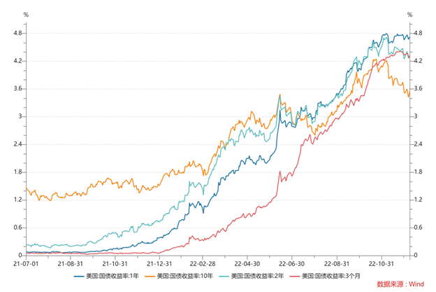 過去一個(gè)月,美債收益率總體下行,美股反彈。市場交易主線為美國通脹見頂、美聯(lián)儲(chǔ)加息即將結(jié)束。
