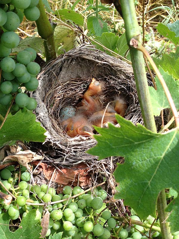 “我們總是看到問題,而非優(yōu)勢(shì)?!彼^續(xù)解釋說,“你看這里的樹林、河流、動(dòng)物、果實(shí)、花……它們完全可以與葡萄園共存。我們甚至在葡萄藤下發(fā)現(xiàn)過一窩幼鳥?!?/p>