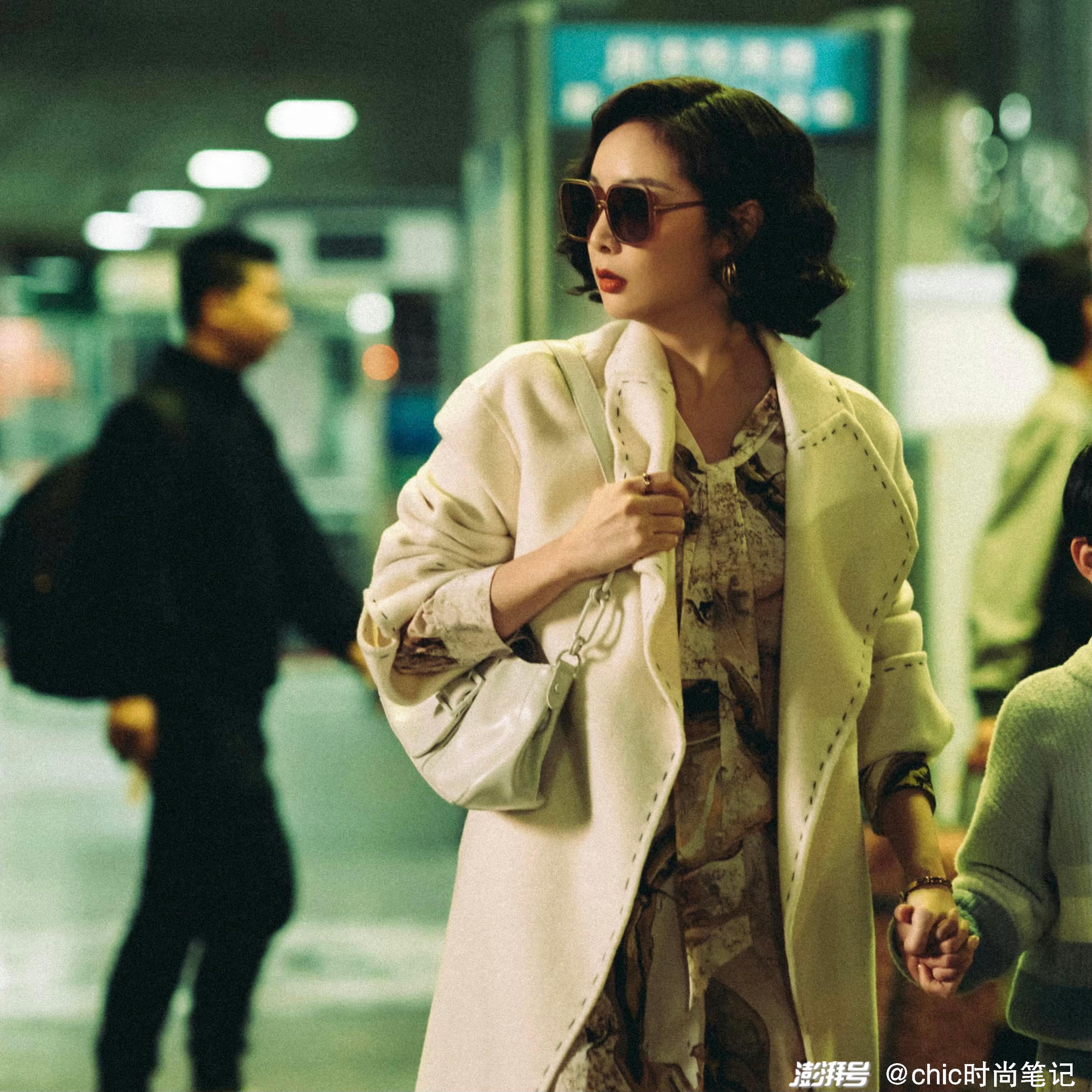 陳書婷在劇中有不少大衣+裙子的造型,這款白色翻領大衣內搭一條印花元素的系帶連衣裙,搭配白色皮質腋下包,優(yōu)雅且顯氣質。一頭標志性的水波紋短發(fā),配上一副棕色墨鏡,簡直大女主氣場滿滿,誰看了不得大喊一聲:“大嫂好”!