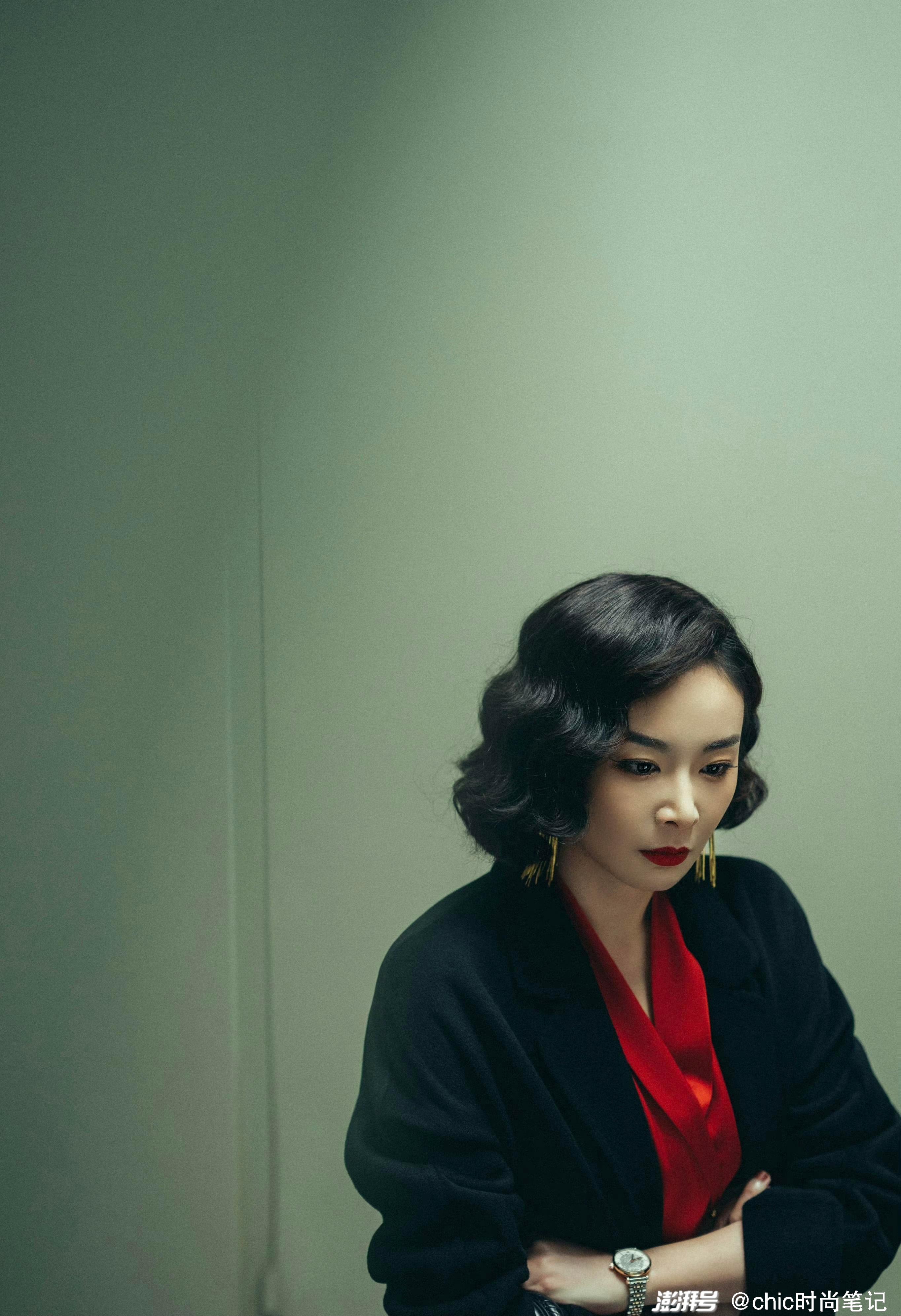 黑色大衣搭配紅色絲綢質地襯衫,復古又時髦,黑+紅的經典搭配永久留存,配上陳書婷自帶大佬的氣場,貴氣而又張揚,仿佛是一朵帶刺的野玫瑰,桀驁不馴。