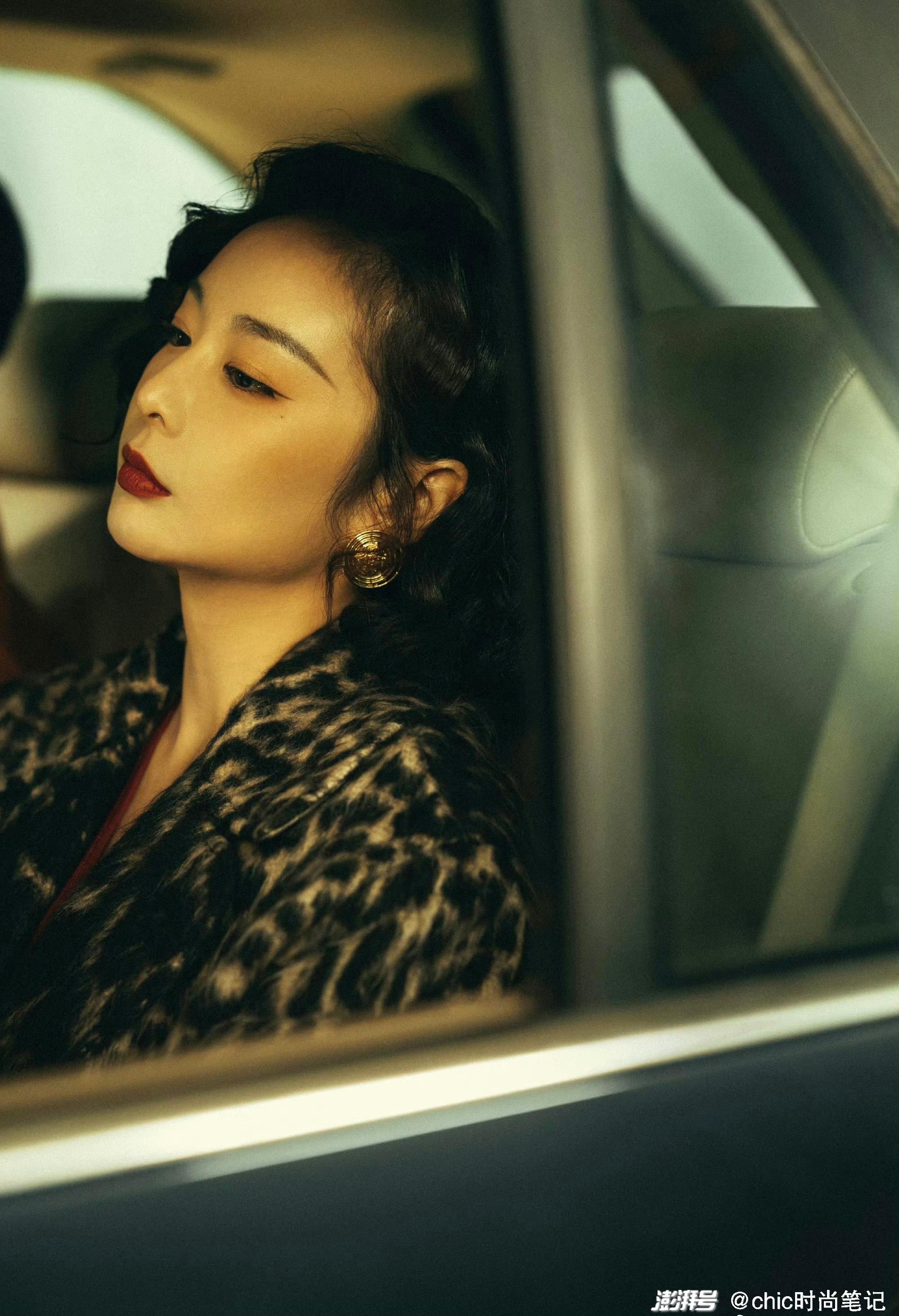 眸光淺淺,深邃的表情讓人猜不透陳書婷的內心。姣好的面容搭配豹紋外套,竟有一種野性之美。耳朵上點綴著夸張的金色圓盤耳飾,當然這樣的搭配肯定是精心挑選的,夸張的耳飾只有豹紋服飾才能hold,氣場全開的女大佬。