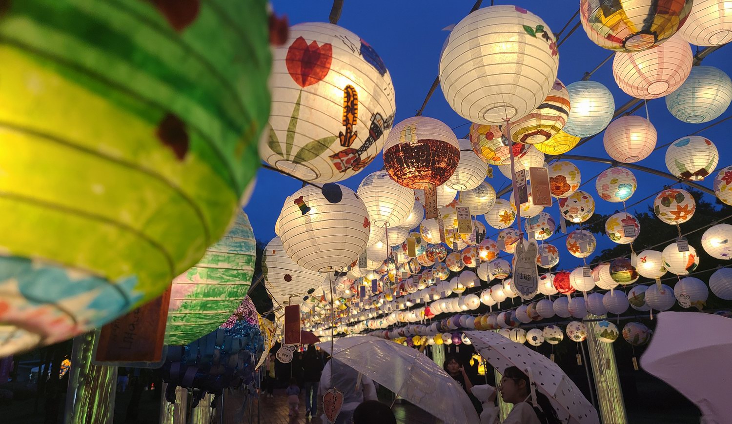 韓國原州舉辦韓紙文化節(jié),五彩紙燈如海如林