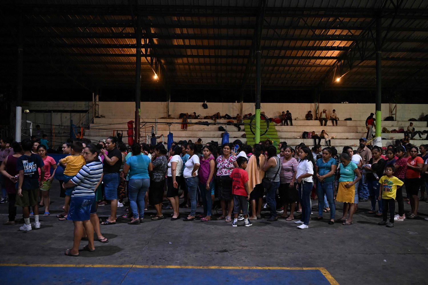 當?shù)貢r間2023年5月5日,危地馬拉,人們聚集在埃斯昆特拉省Santa Lucia Cotzumalguapa的一個體育中心的避難所。