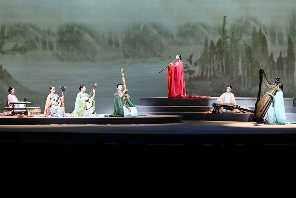 現(xiàn)場(chǎng)不僅有唯美的國(guó)樂(lè),也有充滿想象的光影視覺(jué)。數(shù)千年中華文脈的積淀是演出的精神內(nèi)核。從《汲古》《虞兮》到《墨戲》《山水》,九首作品里可以感受到流淌在文化血脈中的詩(shī)意、典雅、唯美。