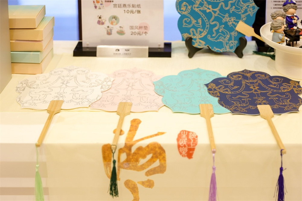與《海上生民樂(lè)》有關(guān)的文創(chuàng)衍生品,一向熱門(mén)。上海音樂(lè)廳進(jìn)一步升級(jí),全新推出流蘇燙金團(tuán)扇,加上國(guó)風(fēng)麻布袋、陶瓷杯墊、定制絲巾、宮廷燕樂(lè)貼紙,集創(chuàng)意與實(shí)用于一體。