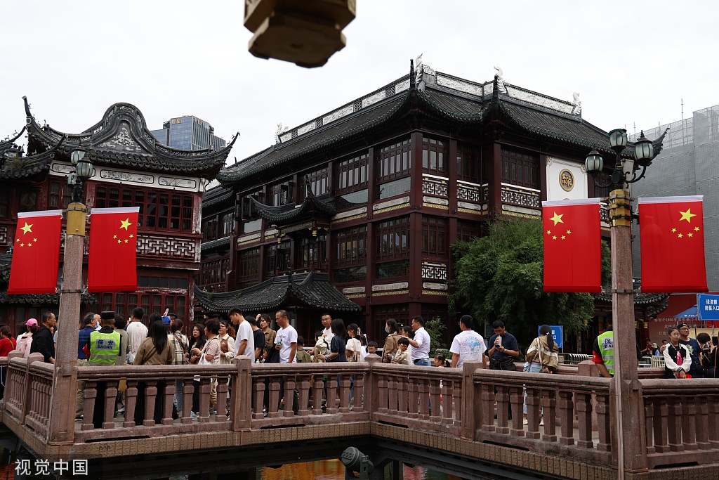 2023年10月5日,上海,豫園九曲橋上游人如織。 視覺中國 圖