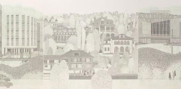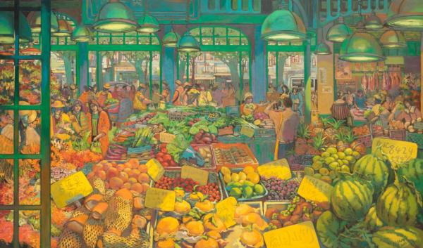 展覽的第三個(gè)版塊“宜居之城”和第四個(gè)版塊“暖心之城”展現(xiàn)了上海的人居環(huán)境和治理模式?!稕]有圍墻的音樂殿堂》《秋日里的美麗步道》等作品描繪了上海推動(dòng)中心城區(qū)高校拆除圍墻,全面打造開放式校園,融入城區(qū)、街區(qū)和社區(qū);《上生·新所》《張開懷抱的上海展覽中心廣場(chǎng)》《上海郵政博物館》《黑石公寓》等表現(xiàn)老建筑化身“潮流新地標(biāo)”,是上海積極推動(dòng)各類歷史建筑的活化利用和有機(jī)更新,在保留歷史文脈的同時(shí),亦賦予歷史建筑新的功能;《定海街道舊改》《梧桐樹下鄰里匯》《幸福加速度》《人間重晚晴》《時(shí)代新苑(新華路十五分鐘社區(qū))》《人間煙火味——烏中集市》《早餐里的“城市溫度”》等呈現(xiàn)了舊區(qū)改造、打造“15分鐘社區(qū)生活圈”、電梯加裝、提升公共服務(wù)配置等與民生息息相關(guān)的內(nèi)容。
