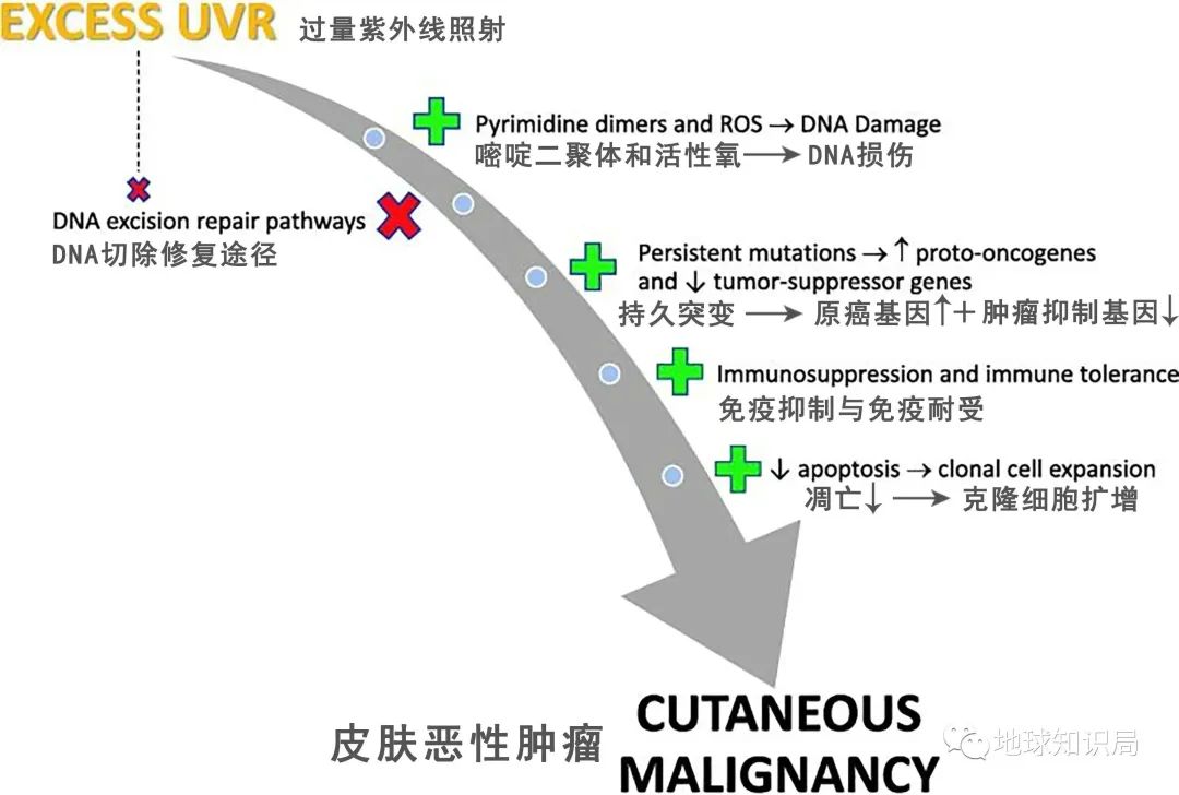 光致癌發(fā)生的多步驟過程示意圖