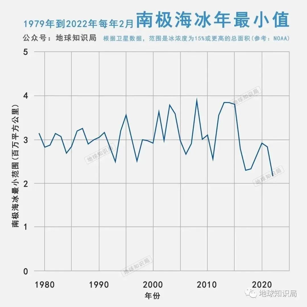 極地的海冰可以強烈反射太陽輻射,對地球的能量平衡調(diào)節(jié)作用顯著。但是南極海冰在過去四十年中呈現(xiàn)出復(fù)雜的變化。在2015年之前,南極夏季海冰具有擴張趨勢,但是在2016年之后迅速縮小。目前的氣候模式難以模擬這樣的變化,因此臭氧對于南極海冰的影響難以得到證明。