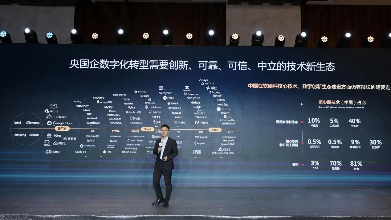 中國在軟硬件核心技術(shù)建設(shè)方面仍有很長的路要走,自主創(chuàng)新技術(shù)比例普遍不高,CPU占有率僅為3%,服務器操作系統(tǒng)占比9%,數(shù)據(jù)庫占比達到了30%,但多用在非核心系統(tǒng),在工業(yè)軟件市場,占比不足5%。但是,從產(chǎn)業(yè)趨勢看,面向云原生的核心軟件和開發(fā)工具鏈、以及以大模型為代表的創(chuàng)新技術(shù),正在顛覆原有的格局。以數(shù)字化轉(zhuǎn)型化解不確定性,深入推進信息技術(shù)和實體經(jīng)濟深度融合,全面提升企業(yè)可持續(xù)發(fā)展能力,是當前戰(zhàn)略轉(zhuǎn)型核心。以新型能力和技術(shù)的建設(shè)、運行和優(yōu)化為主線,才能有效建立和重構(gòu)內(nèi)外部能力,形成新動能,創(chuàng)造新價值,實現(xiàn)新發(fā)展。市場上快速爆發(fā)的數(shù)字化、智能化需求,以及全面去除供應連續(xù)性風險的客觀訴求,為我們帶來了嶄新的歷史機遇:攜手建立一個創(chuàng)新、可靠、可信、中立的技術(shù)新生態(tài)。