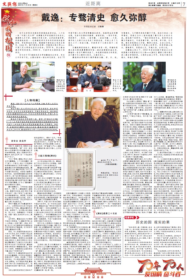 讓我們重溫文匯報于2019年7月14日刊出的通訊《戴逸:專騖清史愈久彌醇》,致敬這位史學(xué)家的史心史德。