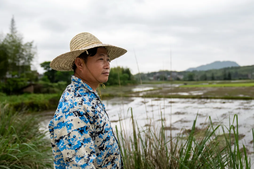 ▲種糧大戶賴欲峰在自家的稻田間 攝影:崔徐波