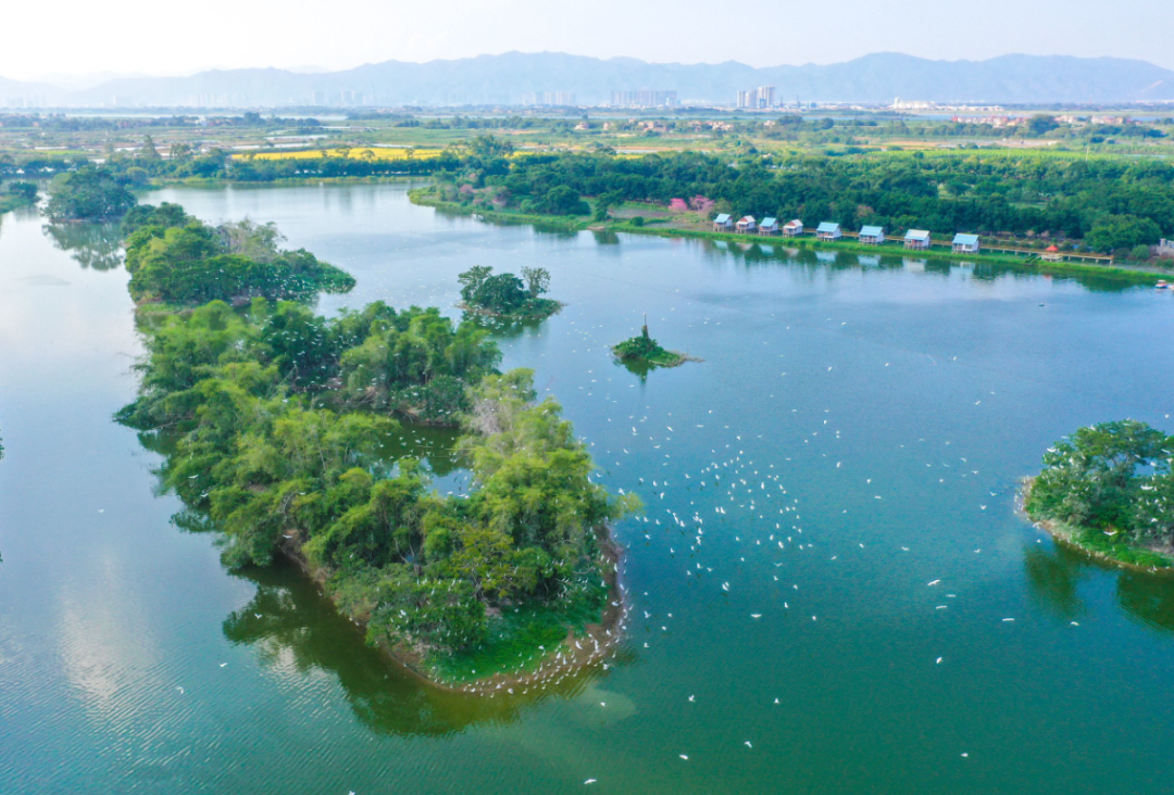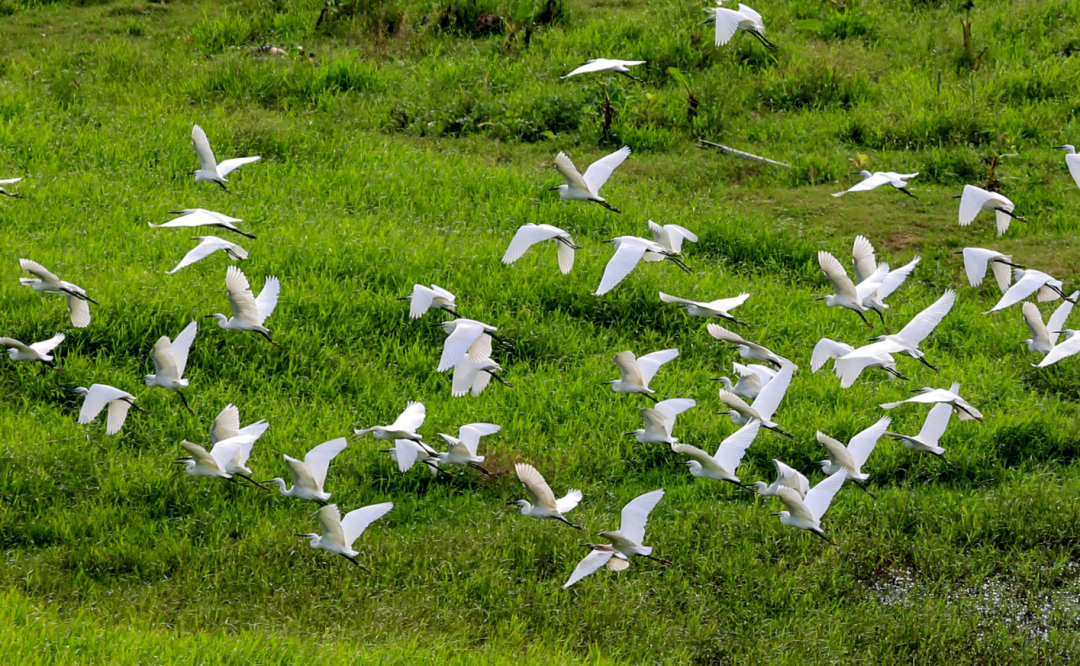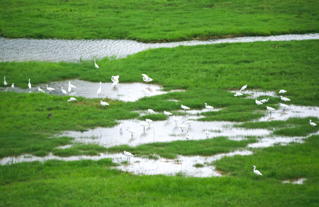鷺鳥在田野淺水區(qū)域結(jié)伴覓食、休憩。肇慶市融媒體中心記者 朱夢(mèng)丹 攝
