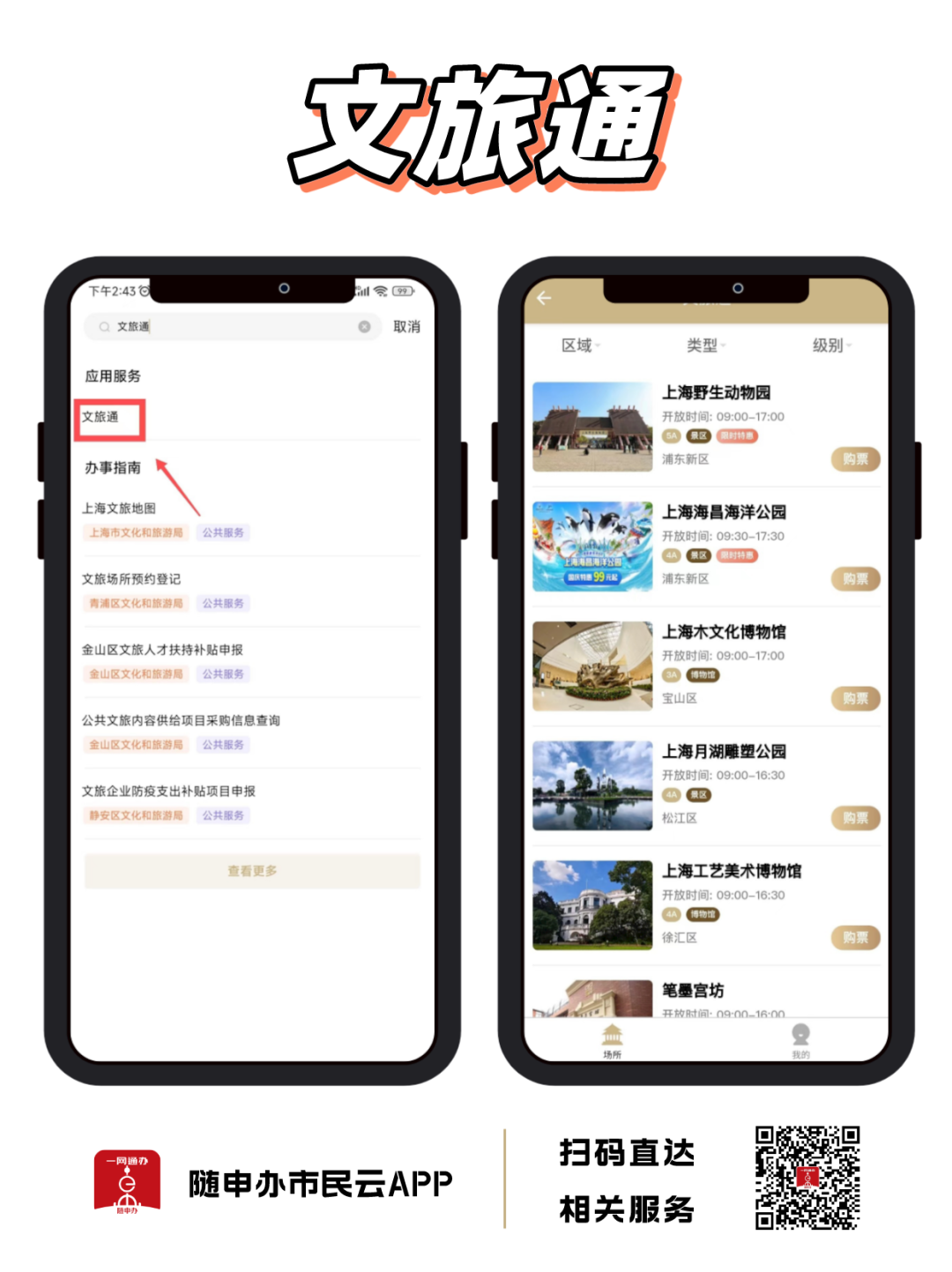 另外,“隨申辦市民云”APP【文旅通】服務(wù)可在線購(gòu)票,現(xiàn)已支持上海部分景點(diǎn)。掃描下方二維碼可直達(dá)服務(wù)。