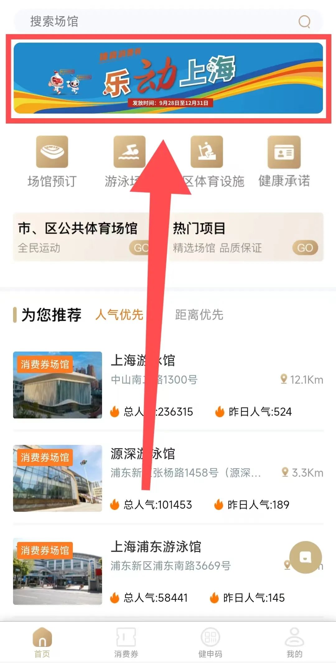 打開(kāi)“隨申辦市民云”APP,首頁(yè)搜索“體育消費(fèi)券”,點(diǎn)擊相應(yīng)選項(xiàng)即可領(lǐng)取。