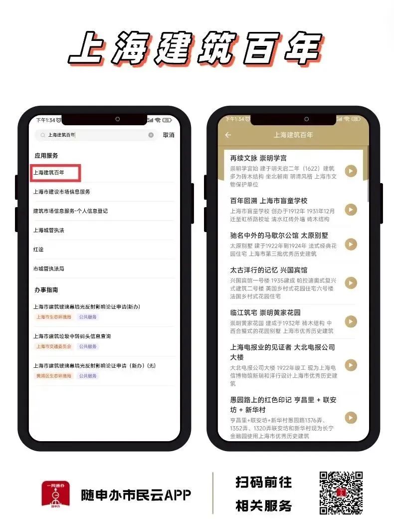 “隨申辦市民云”APP【上海建筑百年】服務(wù),提供專家介紹。掃描下方二維碼