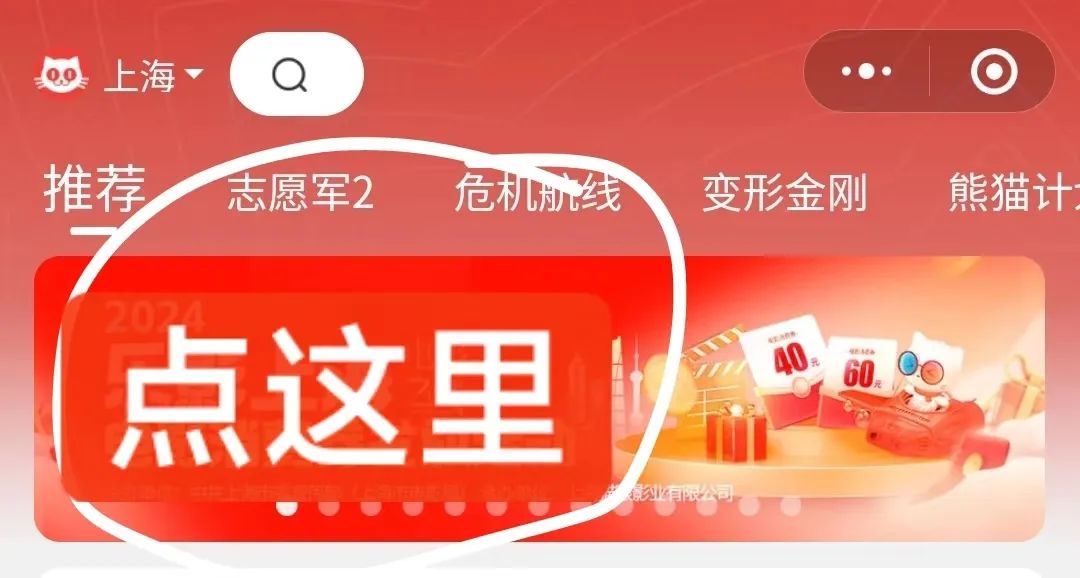 貓眼:APP或小程序首頁(yè)活動(dòng)專區(qū),首頁(yè)進(jìn)入“樂(lè)影上海”
